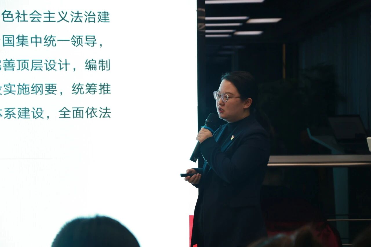 李琼律师从国家宪法日的设立背景与法治意义出发,围绕2025年“学习宣传贯彻习近平法治思想,推动宪法深入人心”这一主题,阐述了其在当下的时代价值和现实意义。她重点解读了习近平法治思想的核心要义,强调坚持党的领导是全面依法治国的根本保证,坚持以人民为中心是根本立场,坚持依宪治国、依宪执政是首要任务。