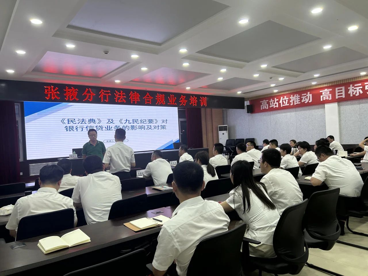 为进一步增强银行工作人员法律风险防控意识与能力提升,促进银行信贷业务合法合规工作,2023年6月30日,我所何小辉律师、骆亚兰律师应邀前往甘肃银行张掖分行,为分行工作人员开展了《<民法典>及<九民纪要>对银行信贷业务的影响及对策》专题培训。