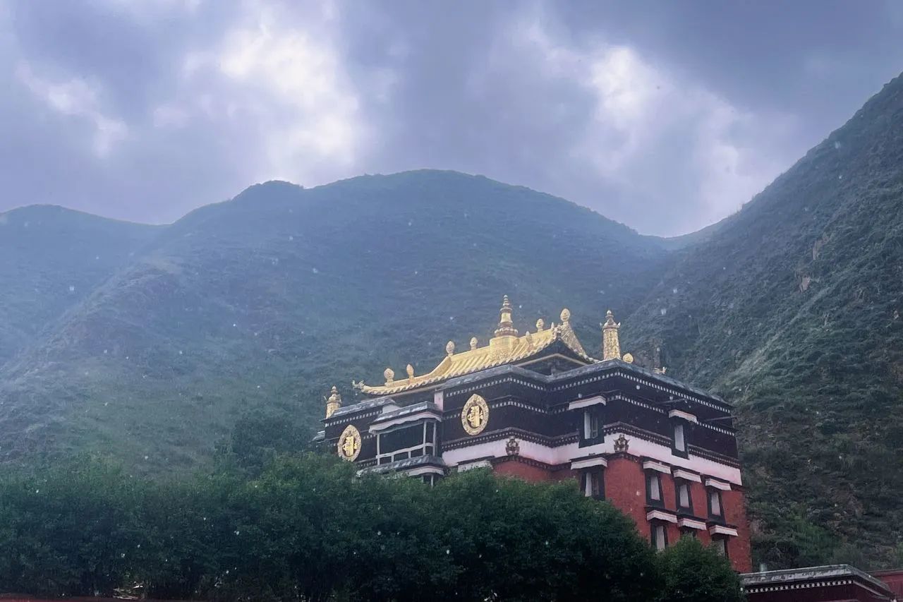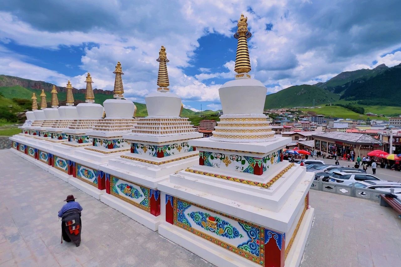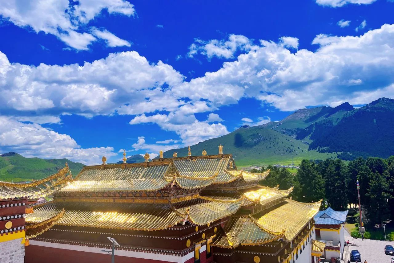 郎木寺并不是一座寺院,而是一个小镇的名字,它横穿四川甘肃两省,被誉为“东方瑞士” 。一条名曰“白龙江”、宽不足2m的小溪从镇中流过,小溪的北岸和南岸有两座寺,分别属甘肃省碌曲县和四川省若尔盖县所管辖,两座寺在这里隔“江”相望,合称郎木寺。