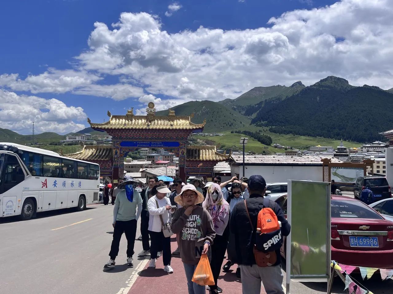 我不知道在现代文明的冲击下,寺庙、僧人是否一如往昔的清心寡欲、晨钟暮鼓,可我清楚每一个来拉卜楞寺朝拜的人都怀着一颗赤子之心。拉卜楞寺,世界最长的转经道围绕着整个寺院。在这里,有瘸着腿低头诵经左手转珠右手拨动转经筒的信徒,有坐在屋檐下敲击石片的老僧,有些歇坐低语,有些肃步向前,还有一群在寺中广场上玩闹的小僧。当你去了解他们,会发现这是另一个相似却又不相同的世界。